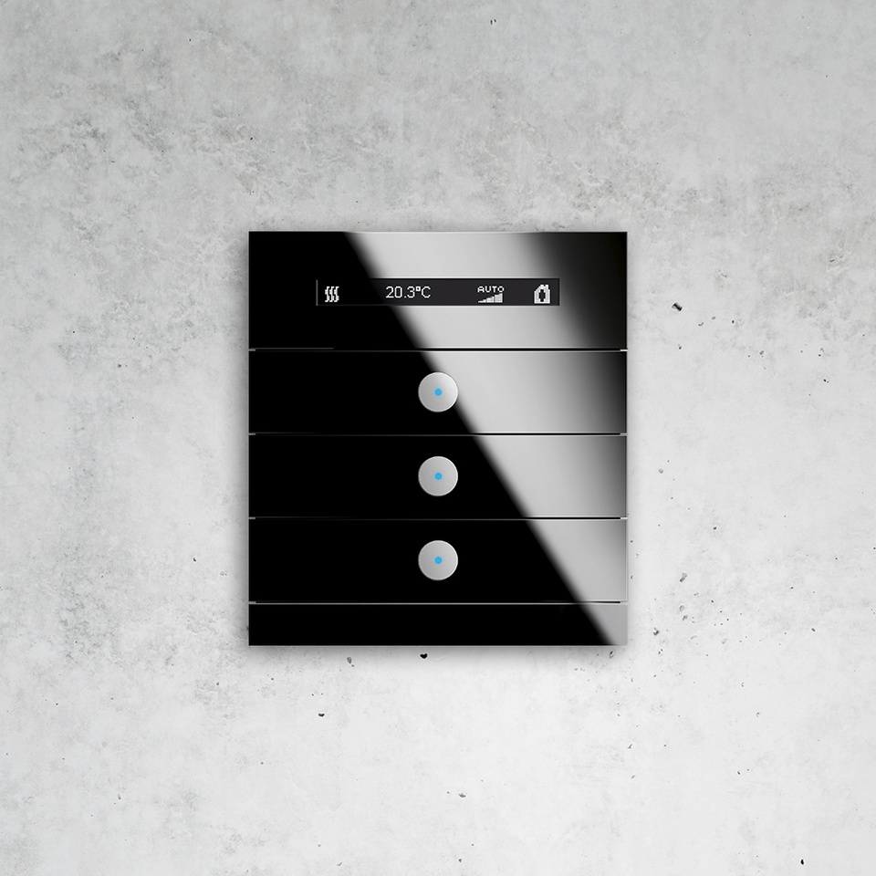 Mit Busch-priOn® steuern und überwachen Sie jeweils den kompletten Raum. Licht, Szenen, Timer, Jalousie- und Heizungssteuerung: Alle Funktionen erfolgen intuitiv über einen Drehknopf. Frei programmierbare Funktionen können über die Wippen abgerufen werden. Busch-priOn® ist rahmenlos und modular aufbaubar.
